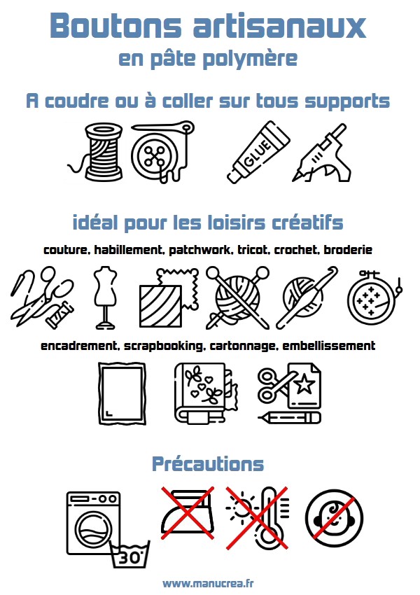 Boutons artisanaux et épingles décoratives en pâte polymère - Broderie au point de croix